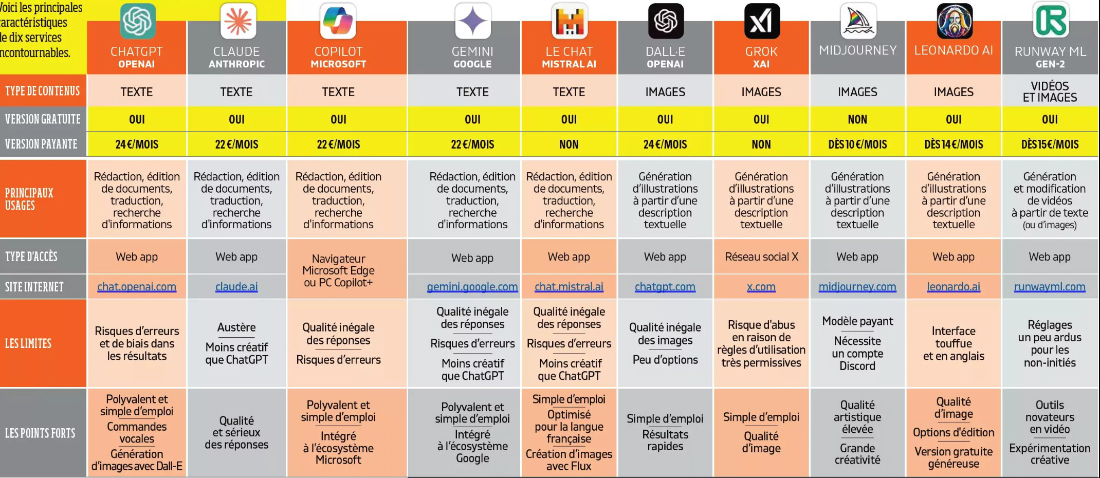 Voici les principales caractéristiques de dix services incontournables. ICI